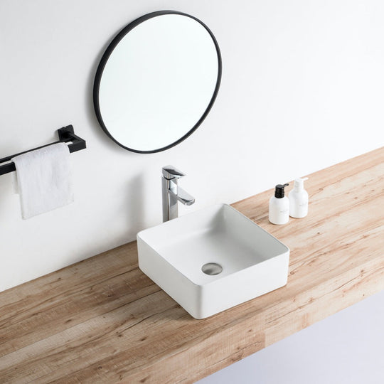 Lavabo da appoggio quadrato in ceramica RIVA bianco opaco