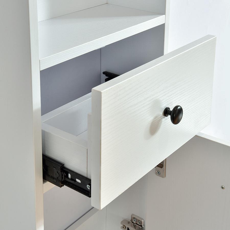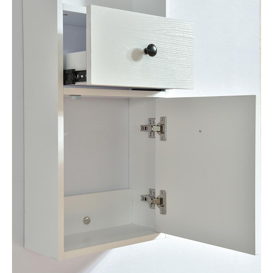 Realizzato con pannelli in fibra di legno di alta qualità. La sua finitura in melaminico evidenzia le venature del legno sotto un colore bianco, donando eleganza al vostro bagno.