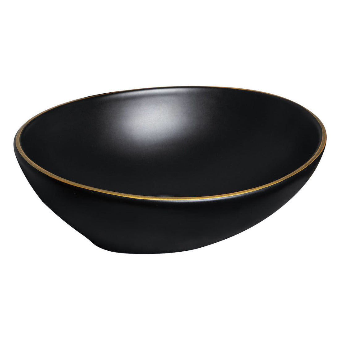 Lavabo da appoggio di forma ovale in ceramica, finitura nero opaco marmorizzato con dettagli dorati, che dona un tocco ultra-design al vostro bagno.