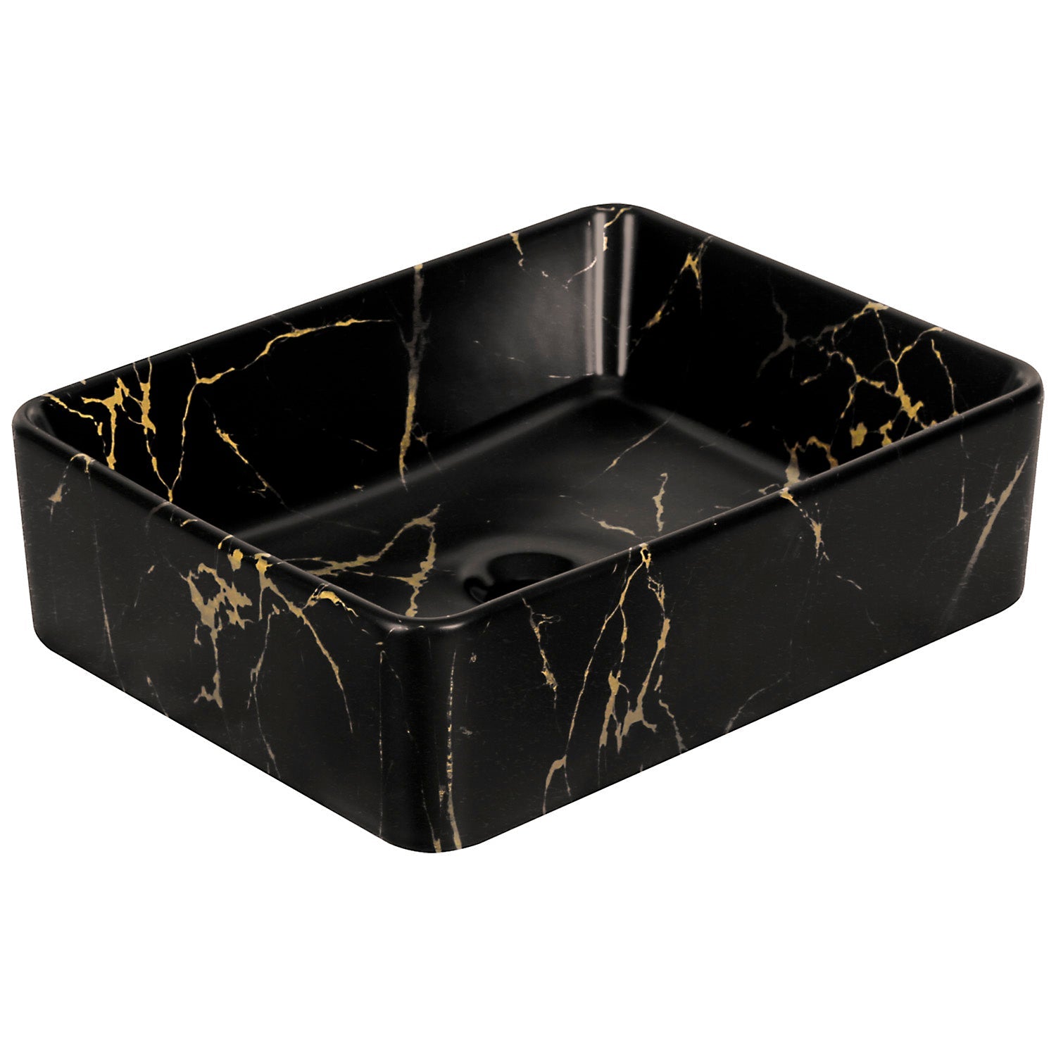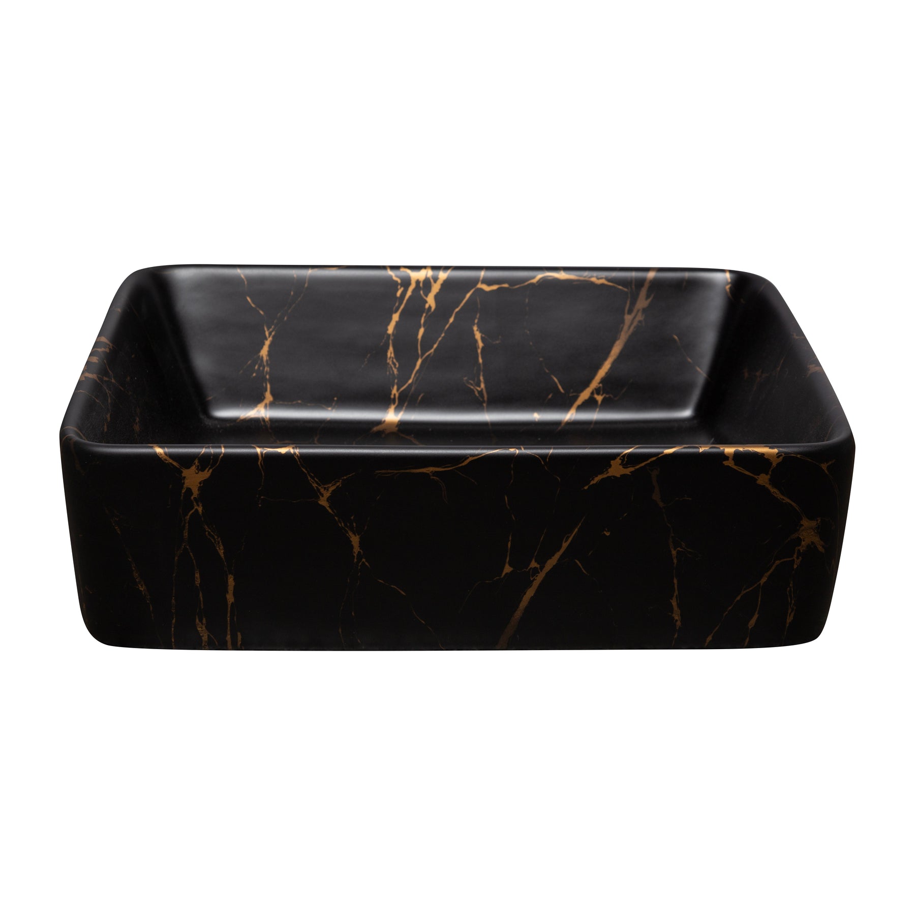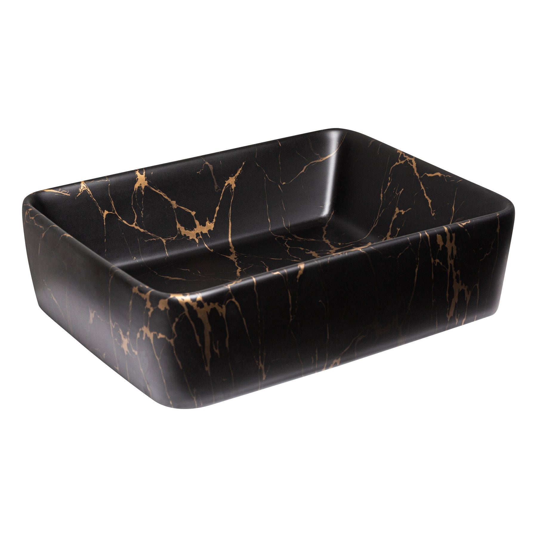 Lavabo da appoggio di forma rettangolare in ceramica, finitura marmorizzata nero semi-opaco e oro, aggiungi un tocco di design ultra moderno al tuo bagno.