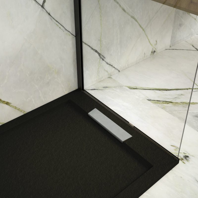 Piatto doccia ultrasottile LUX in resina, ultra resistente e durevole nel tempo, colore nero (RAL 9005).