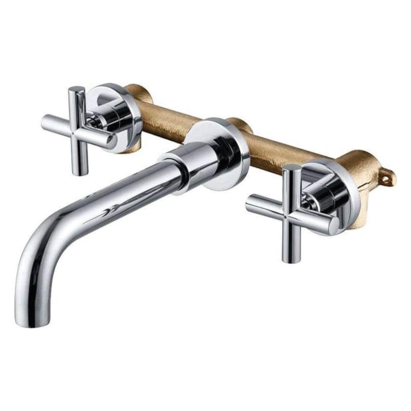 Rubinetto miscelatore a 3 fori per lavabo e lavandino, dallo stile di design e finitura cromato.
