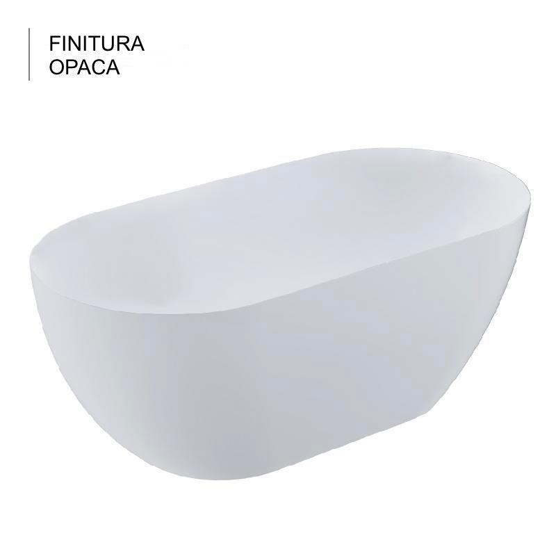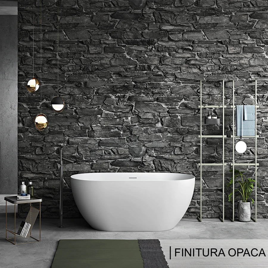 Vasca da bagno di stile moderno in Resicryl®, un materiale composto da due strati di acrilico di alta qualità da 8 mm con un rinforzo in fibra di vetro molto resistente. Vasca da bagno centro stanza, doppio schienale e troppo pieno completo inclusi. Lunghezza 150 cm, 160 o 170 cm.